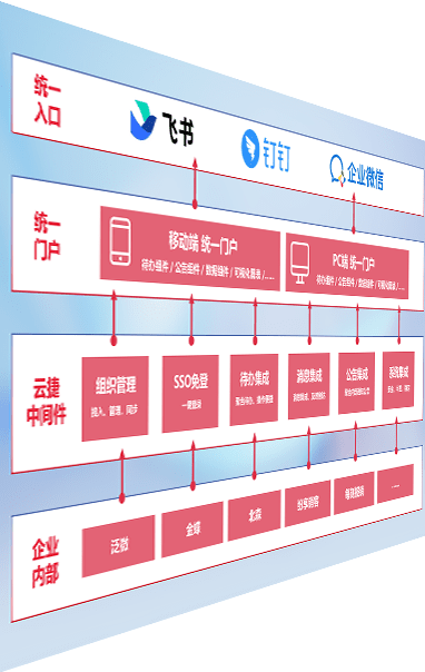 对协作平台提供支持服务,,,支持企业应用与协作平台对接,,,包含组织同步、、、、消息集成、、、待办集成等。。。支持目前主流的协作平台:钉钉、、企微和飞书。。。